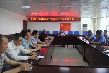 4月27日下午,美青化工在生产大楼二会议室召开了2017年度“安康杯”劳动竞赛活动总结表彰大会,对过去一年的工作进行了总结,并对活动中涌现出的3个优胜集体予以了现场表彰。