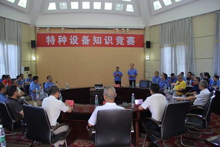 为了加强公司特种设备管理水平,提高特种设备操作人员安全意识,营造“安全生产重于泰山、特种设备一马当先”安全氛围,美青化工有限公司于2019年7月12日下午,举办了特种设备知识竞赛活动,公司董事长、总经理任国建,副总经理宋根、谢安、李旭东、张鹏和各职能部门负责人出席观看本次竞赛。
