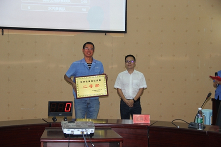 本次活动共有6支参赛队伍,分别是合成车间代表队、尿素车间代表队、三胺车间代表队、水汽车间代表队、仪电车间代表队和公用机修联队,参赛选手都是车间的特种设备管理人员和普通员工。竞赛共分必答题和抢答题两个环节。6支参赛队伍激烈角逐,台上选手们从容淡定,对答如流,台下观众鼓劲加油,掌声不断,赛场气氛热情高涨,使活动有声有色地进行着。经过两个小时的精彩比赛,最终尿素车间力压群雄,夺得了本次知识竞赛的冠军,仪电车间和合成车间分别取得了亚军、季军。尿素车间李勇凭借答题过程中的突出表现获得个人优秀奖。