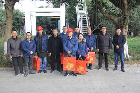 1月25日,大年初一早上,集团公司领导任国建、宋根、谢安、何琳、李旭东迎着春节的喜庆、带着美好的祝福,来到美青化工看望和慰问节日期间坚守岗位员工,为他们送去新春的祝福,把第一缕喜气和暖意带到他们心中。