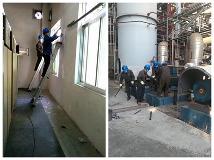 *检修现场热火朝天、井然有序。