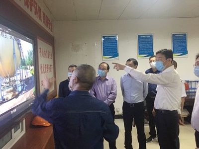 董事长任国建和副总经理谢安首先向邵书记一行汇报了公司复工复产和生产经营情况,在生产调度室视频监控画面面前,详细汇报了公司安全风险管控和重大危险源液氨罐区安全监管情况。