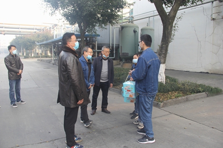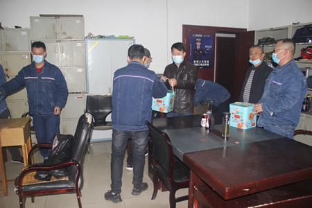 银鼠随风辞旧岁,金牛顺气报新春。2月12日,农历大年初一,集团公司领导任国建、谢安、何琳、李旭东代表集团党委和经理班子,来到美青化工厂区向春节期间坚守岗位的员工们致以诚挚的节日问候,叮嘱大家春节期间要注意身体健康、保持战斗力,共同做好疫情防控和安全生产工作。