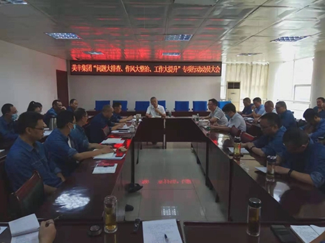 2021年9月22日上午,美丰集团在美青化工生产大楼二会议室召开“问题大排查、作风大整治、工作大提升”专项行动动员大会。公司党委书记、总经理任国建,党委委员、副总经理宋根、何琳,党委委员、总经理助理张鹏,党委委员、总会计师李旭东出席会议。会议由任国建主持。