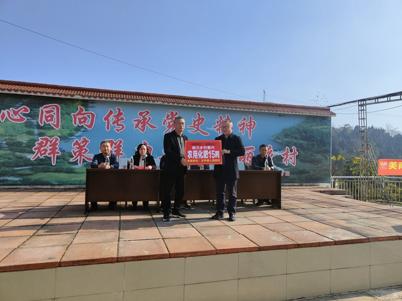 美丰集团党委书记任国建代表公司在现场捐赠了15000公斤尿素。甘市长对美丰集团勇于承担社会责任、积极助力乡村振兴、真心回馈父老乡亲的行为给予了高度评价和赞赏,表示将一如既往继续全力支持美丰集团的各项工作,促进企业做大做强做优。任国建表示,美丰集团、美青化工作为射洪市重要的国有化肥生产企业,理应自觉履行社会责任和义务,愿和广大父老乡亲一道,在推动射洪做强工业和乡村振兴,实现共同富裕的道路上迈出坚实的步伐。